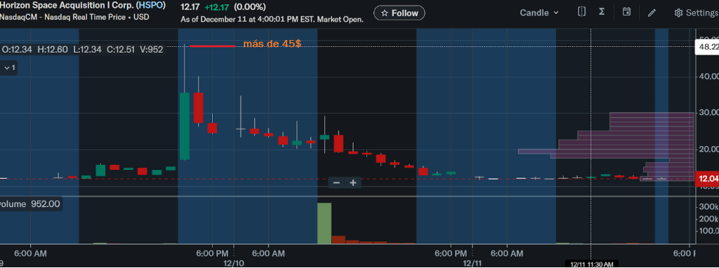 Esta misma SPAC (con el mismo valor de 12,43 $) llegó a cotizar a 45 $ tres días antes de esta compra que te cuento.